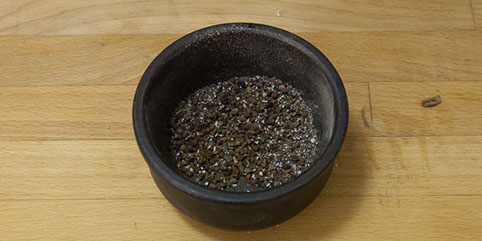 1. Krossa kryddorna i en mortel.